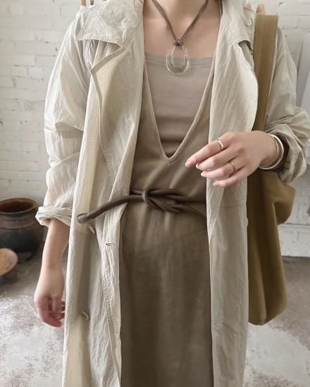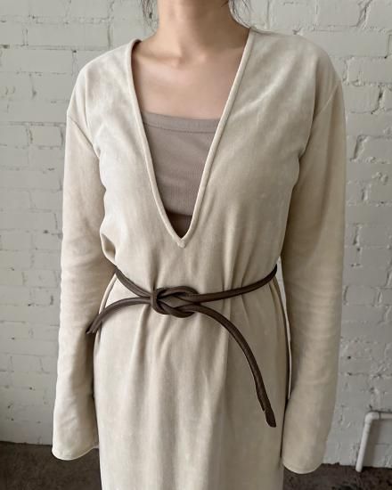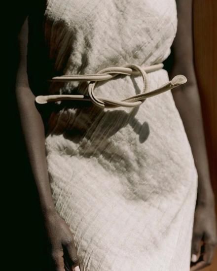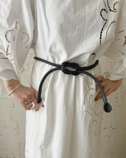 その名の通り“結ぶ”ことでサイズやバランスを自由に調整できるデザインで、ウエストマークにはもちろん、ワンピースやジャケットの上からさらりと巻くだけで、コーディネートに程よいアクセントを加えてくれます。